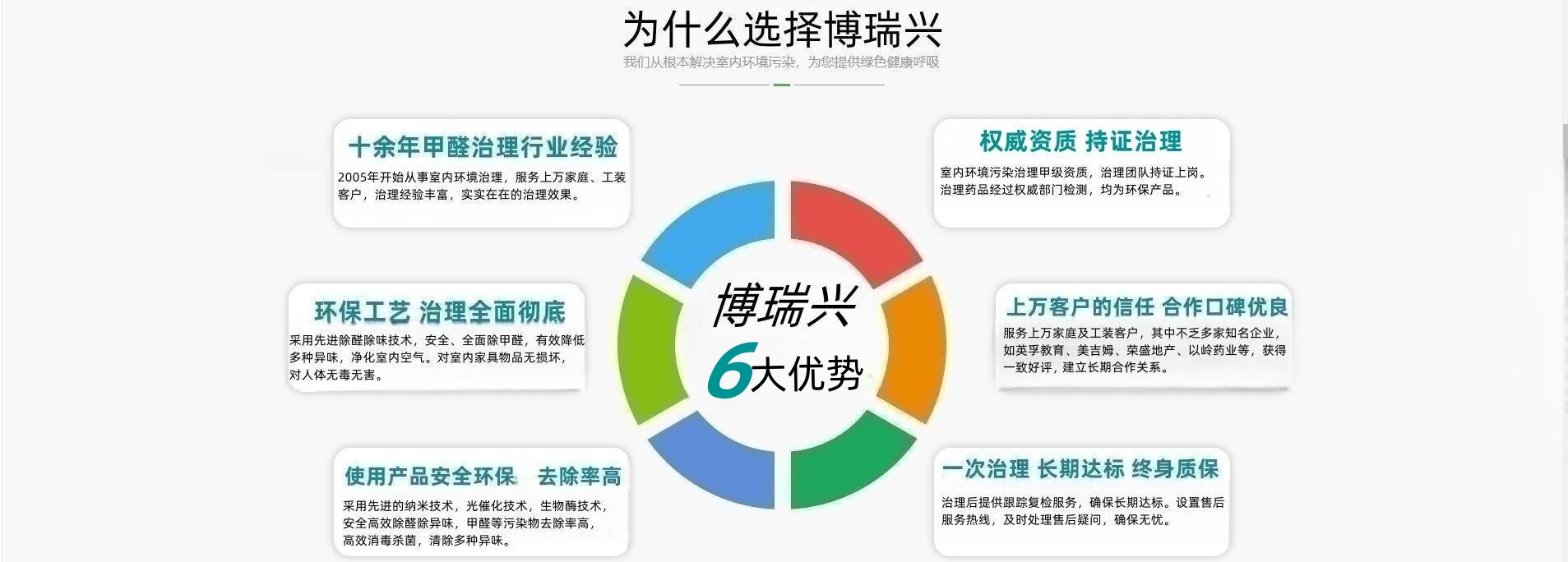 石家莊博瑞興生物科技有限公司是專業(yè)從事室內環(huán)境凈化、室內空氣污染治理的高科技環(huán)保企業(yè),公司致力于全方位解決工裝、家庭、寫字樓、醫(yī)院、賓館、學校、商場、銀行、娛樂場所等因甲醛、苯、甲苯、二甲苯、TVOC、氨及多種異味引起的室內環(huán)境污染問題。 公司采用先進的檢測儀器和科學的治理方法,專注的技術團隊嚴格按照國標技術規(guī)范開展服務,擁有完善的質量保障和售后體系,以提高室內空氣質量,改善人類居住環(huán)境為己任,不斷加強技術創(chuàng)新和團隊的培養(yǎng)。 博瑞興堅持持續(xù)性品質、口碑與服務,良心匠心精細化除醛除味,秉承著誠信、負責、務實的態(tài)度為您的提供健康、優(yōu)質的環(huán)境,以優(yōu)質的環(huán)保產(chǎn)品、專業(yè)的除醛技術和精湛的施工為每一位客戶提供誠摯的環(huán)保服務!